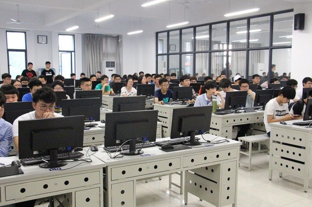 本次竞赛采取闭卷的形式,分为两部分:机试选择题和上机编程题。选择题部分考察选手的计算机基础,要求参赛选手在规定时间内完成100多道计算机基础方面的选择题。上机部分共有7道不同难度的编程题。这两个部分不仅考察了同学们对计算机体系结构、编程语言及算法、数据库、计算机网络、信息安全等方面知识的了解,更检验了大家的编程能力。比赛以小组为单位参赛,每个小组13人,在规定时间内,合作完成题目。