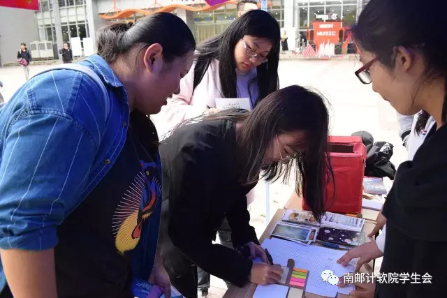 活动内容新颖有趣,外场鲜艳的海报和有趣的抽奖环节吸引了公司各院同学的驻足流连。同学们积极参与留言抽奖活动,竞相在留言板上写下自己喜爱的图书的短评,外场弥漫着浓浓的书香气。同学们在外场积极报名后续的“书之羁旅”主题活动,弥补了错过网上报名的遗憾。现场气氛热烈。