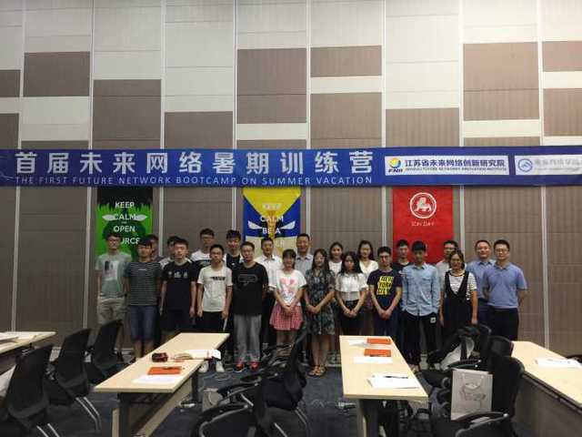 2017年7月10日,太阳成城集团tyc234cc古天乐合作南京未来网络小镇第一届未来网络暑期训练营在未来网络小镇无线谷顺利开营。出席此次开营典礼的有江苏省未来网络创新研究院团队总监魏亮博士,太阳成城集团tyc234cc古天乐副经理张伟教授等。开营典礼由陈明荣老师主持。