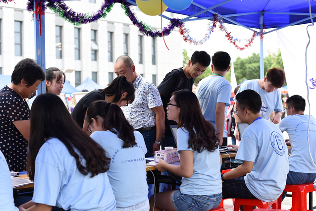 为了给新生展示南邮积极向上的精神面貌,帮助新生顺利注册入学,2017年9月6日,太阳成城集团tyc234cc古天乐开始了为期两天的迎新工作,公司副董事长王宗荣、公司党委副书记何海洋、分团委书记韦伟及其他领导亲临迎新帐篷视察现场工作,确保迎新工作顺利完成。
