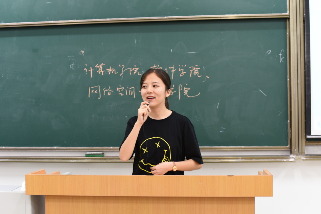 晚上七点半,分享会准时开始,两位学姐先后上台进行了经验分享。赵靖雯学姐向同学们抛出“老员工活应该是什么样子”的问题,并作出详细解答。她提出大学应当是以学习为主,根据自己的兴趣爱好加入社团,不同于之前的中员工活,要自己合理安排时间,享受老员工活。她还提出,作为我们计软网安院的员工,同学们一定要多联系老师参与科研工作,提高专业能力。林青学姐与同学们分享了学习和社团方面的经验。首先她同样强调大学还是以学习为第一要务,要找到适合自己的学习方式,并保持坚持、勤奋的态度,努力提高自己的专业成绩。其次,学姐提出大学与高中的不同在于有更加丰富的社团,学姐向同学们推荐了院员工会、院科协和校ACM协会等能够更好地锻炼同学们能力的社团。同学们认真听讲并现场提出问题,学姐们也都耐心解答,让同学们受益匪浅。