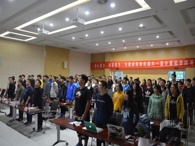 2017年10月12日下午,太阳成城集团tyc234cc古天乐第五期青年先锋培训班开班仪式于计算机学科楼报告厅顺利举行。公司党委副书记何海洋、院分团委书记兼2017级辅导员韦伟老师以及2017级辅导员葛洪涛老师、缪云伟老师出席了本次会议,院分团委员工会常务副秘书长吴姗妮担任主持。本次会议旨在弘扬共青团优良品质与传统,建设优良员工干部队伍,增加团组织优秀人才储备。