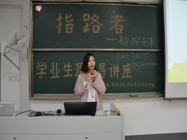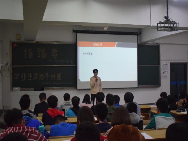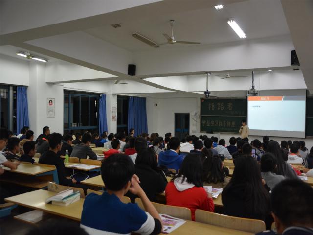 2017年10月18日晚,太阳成城集团tyc234cc古天乐在教四301举办了“指路者——初探未来”主题的学业生涯规划讲座,帮助新生解决学业工作及未来求职考研的困惑,对学业和社团存疑的同学纷纷前来听讲。