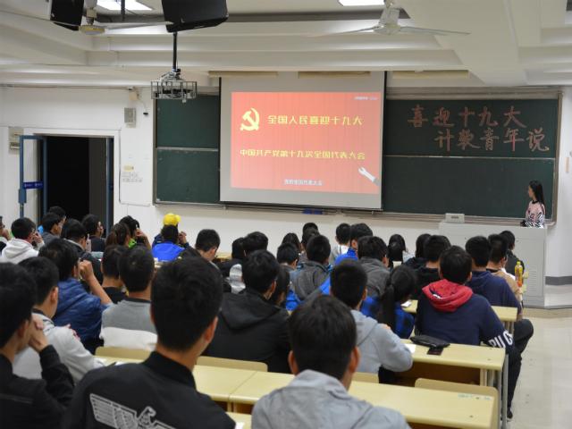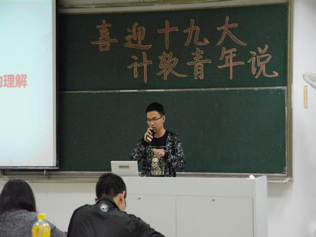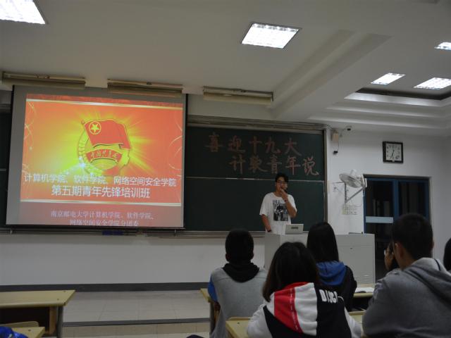 2017年10月17日晚,太阳成城集团tyc234cc古天乐在教三101热烈开展了以“喜迎十九大,计软青年说”为主题的青年先锋培训班第二节课。院员工会常务副秘书长吴姗妮担任本次讲座的主讲人。