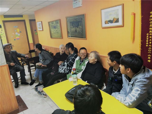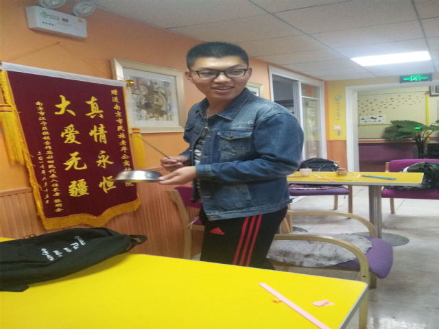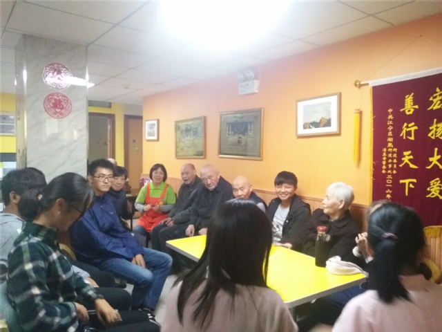 随后的游戏——击鼓传花猜谜语,则是气氛最热烈的时刻。游戏虽然紧张,但是猜的都很开心,老人们也是乐在其中,甚至还开始自己出谜语给我们猜。完全看不到拘谨,宛若孩童与我们打闹成一片,我在那些笑容簇成的花里看见开怀的甜蜜在涌流,心里感动万分,也忍不住为自己志愿者的身份感到骄傲和自豪。每一个人都在这充满掌声和欢笑的大厅里找到了最淳朴最温馨的快乐。四点多时,我们一起进行了大合唱。时光仿佛在这一刻凝固,在悠扬的歌声中,我终于明白:自己加入青协,不就是为了能够在这异乡,也能感受到家的温暖吗?志愿者活动并不是任务,而是生活。我们在奉献中,更多也得到了来自陌生人的关爱与信赖,并在这些相处中建立起深厚的情谊。在温暖他人的同时,也温暖了自己。