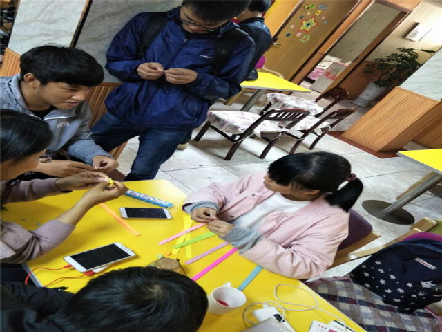 随着一位一位爷爷奶奶的到来,大厅渐渐热闹了起来。许久不见,我们不免一番家长里短。一些同学开始叠星星,用星星表达着自己对老人们的祝福。这时,一位奶奶看见我们正在叠星星,饶有兴趣的拿起了一条星星纸,竟是打算自己动手,于是,一位志愿者主动过去帮助,最后奶奶也自己动手做出了好多个星星。看着星空瓶里色彩缤纷的星星,老人们的眼中闪烁的是感动又幸福的光芒。虽然只是简单的折星星,但每一颗星星里,都有我们身为志愿者的关怀和祝福。我们通过星星,与老人们互动,希望他们能感受到冀暖青协对他们的祝愿和关心:不仅是作为志愿者更是类似于家人的温暖。希望身位志愿者的这丝微不足道的爱,能让老人在重阳节里,虽不能与家人团聚,也能感受到家的温暖和幸福。