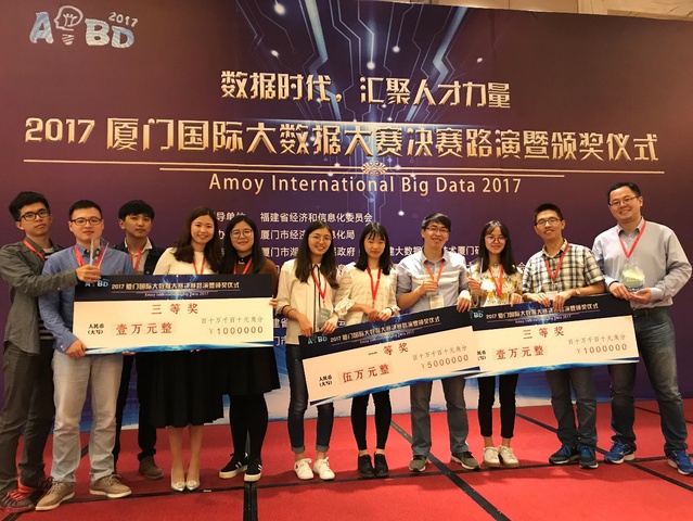 11月18日,2017年厦门国际大数据大赛在厦门希尔顿逸林酒店举行了决赛路演暨颁奖仪式。由公司2016级和2017级研究生为主组成的三支队伍均获得佳绩。其中,公司刘峥老师指导的由郭舒婷、柳池煜、吕朝萍(通院2016级硕士研究生)所组成的“绫小路清隆”团队夺得大赛唯一的一等奖,公司刘峥老师指导的由覃婷婷、杨泽宇所组成的“KEEN”团队和公司李华康老师指导的由曹艳蓉、李晓鹏、周泳东、顾佩月、谭嘉辉(光电公司2015级本科生)组成的“邮问必答”团队均获得大赛三等奖。同时,太阳成城集团tyc234cc古天乐获得大赛最佳组织奖。