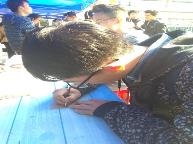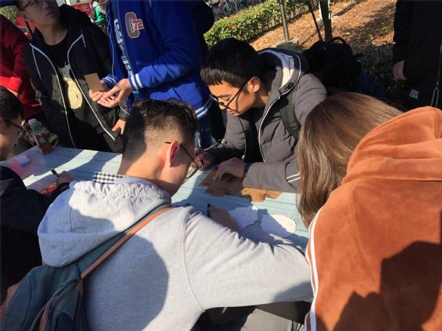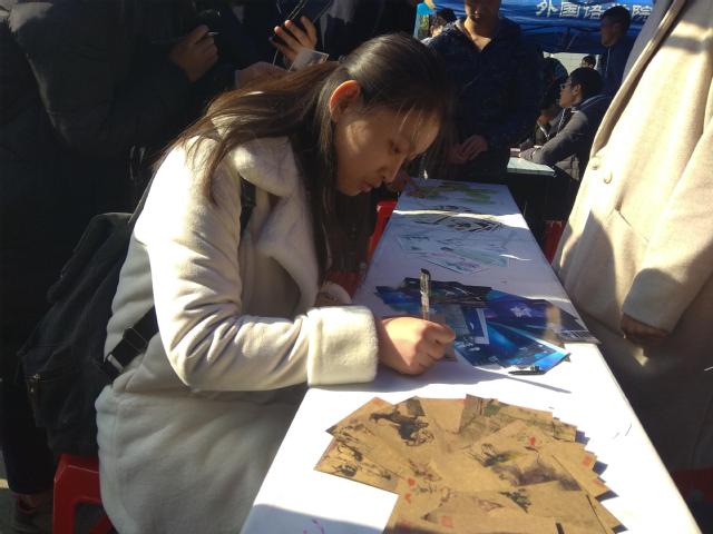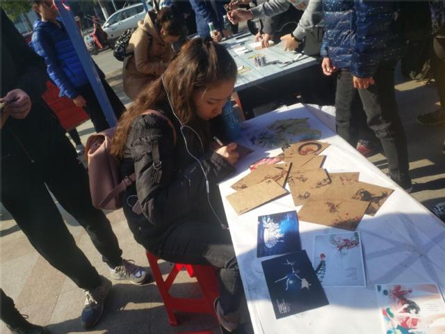 本次外场共有三个子活动,在“我为选手出道题”中,热情的同学们大展拳脚,写下一个个有关诗词经典的问题,等待着后续活动中高手的解答。古典的书签配上诗情画意的问题相得益彰。再看另一边,“经典书籍我来评”活动也开展得有声有色,大家纵情抒怀,将自己阅读的感受与对书籍的评价留存于书签之上。与此同时,“书藏情深,赠与佳人”活动中,同学们则在明信片上吐露着自己的真情,将自己想传达的深厚情谊写在明信片上,寄给对方。整场活动显得那么静好,充满内涵与感动。