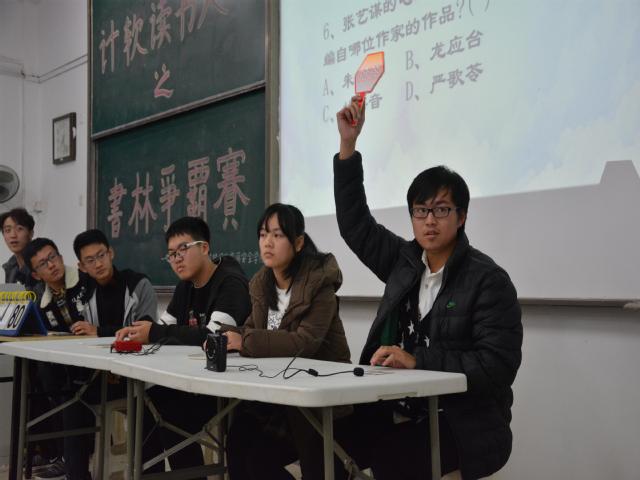 本次比赛每轮分为两个部分:牛刀小试和锋芒毕现。在“牛刀小试”环节,同学们沉着冷静,积极调动思维,迅速抢答;在“锋芒毕现”环节,同学们发挥自己的才智,运用自己的知识储备来回答后援团给出的问题。本次比赛还创造性地采用了“技能牌”规则,“偷天换日”、“铁索连环”、“斗转星移”,每一张牌都有着不同的技能,参赛选手们比拼的不仅是知识储备,还有随机应变、判断决策的能力。此规则也极大的增加了本次比赛的趣味性,让同学们在游戏中体会到读书的乐趣。在观众问答环节,同学们也是积极参与,现场气氛十分热烈。经过激烈的角逐,冯雷、张学成、谢亚霖、许瑞彬、陆柳伊、陈雪刚同学通过了预赛的考验,成功入围半决赛,同时获得了“读书之星”的称号。
