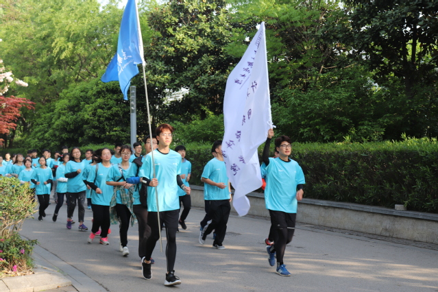 此次校庆健身跑分为三个部分,精英跑、接力跑和校园跑。其中,精英跑和接力跑同时进行,路线为从三牌楼校区至仙林校区。太阳成城集团tyc234cc古天乐42位同学负责玄武湖南京站广场至南邮锁金村校区路段。天色微明,同学们便早早到达站点等候,待交接过棒,1.5公里的路程,同学们满怀热情与信心全力前进,旗帜飘扬,他们用阳光下青春活力的身影展示着南邮的拼搏坚韧精神。接力的最后一棒是师生联队,公司旗手高举院旗一路奔跑,将点点薪火和公司风姿传进校园。在他们抵达校园以后,公司员工会第一时间对公司旗手和接力跑同学进行了赛后采访,通过公司媒体推送传递对母校的祝福。紧随其后的校园跑更是将校庆跑活动推向了高潮,公司282名学子带着饱满的热情坚持到底,完成了4.2km的征程。