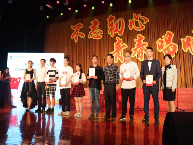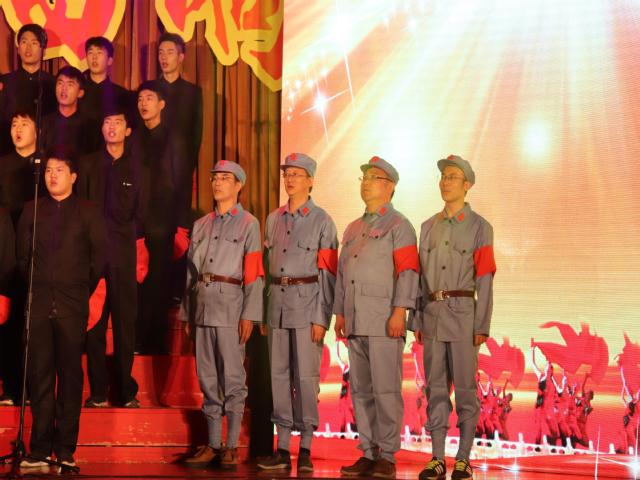 五四表彰的圆满结束拉开了合唱比赛的序幕,本次合唱大赛中公司合唱团队第二个出场。伴随着一阵欢呼与掌声,公司精心准备的合唱表演《跟着共产党走》登场,用铿锵有力的誓言表达公司学子爱国爱党的热情和奋发进取的决心,给评委留下深刻印象。在第一小节结束后,两位舞蹈演员以精湛的舞技和传神的感染力,向我们展示了妻子送丈夫从军的感人场面。公司季小健书记、章韵副经理、何海洋副书记、黄海平副经理在此时登台,与红军新兵握手,并向台下敬礼,表达对党的尊敬与赞美,巧妙加入合唱表演。合唱最后,同学们举起手中的黄花与红花,为五四青年节献礼。在公司全体师生的共同努力下,公司合唱团队最终获得了三等奖。校团委李晓华书记、王小露副书记、教务处彭国香副处长、人事处黄一鸣副处长进行了颁奖。