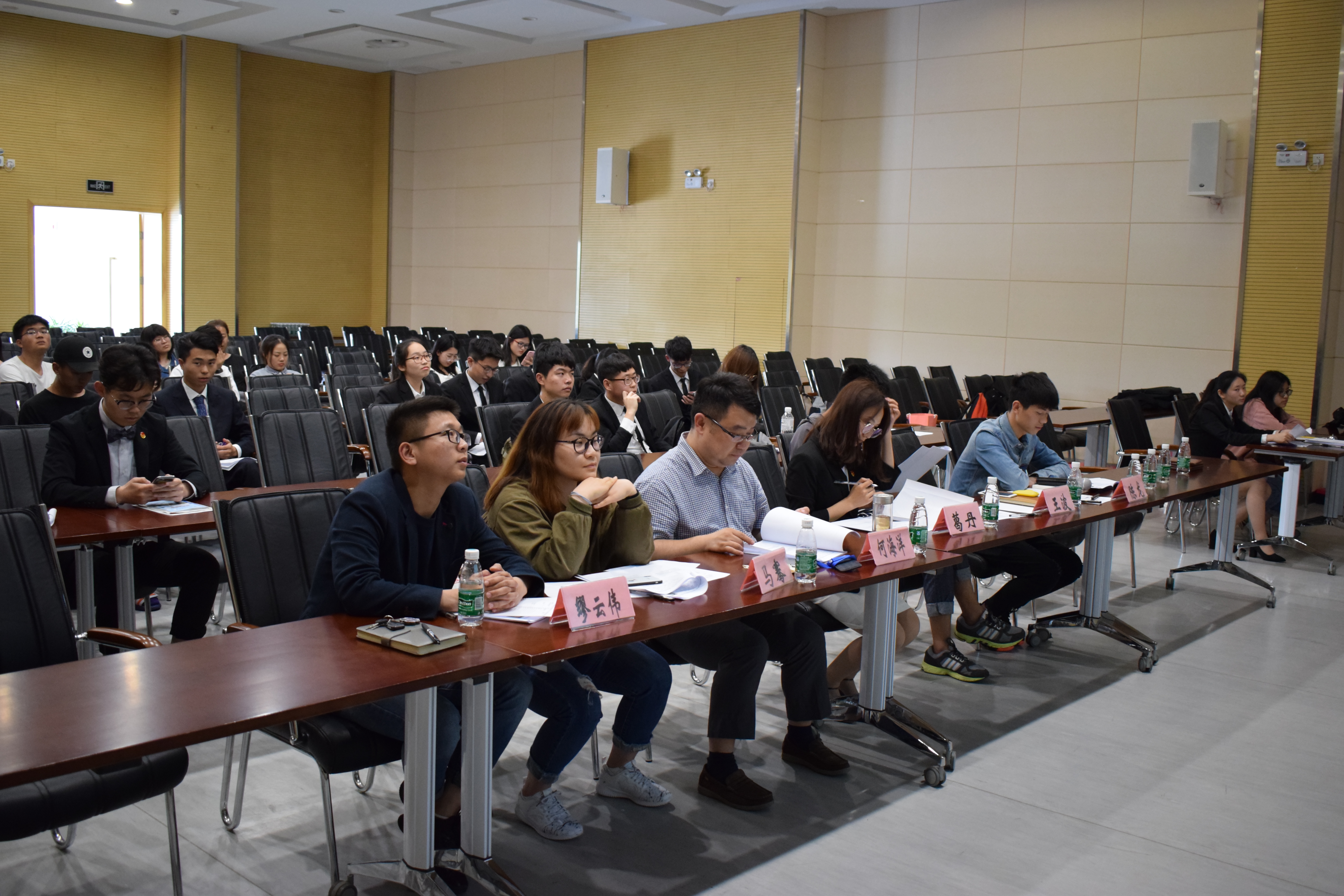 莅临本次会议的领导老师有何海洋副书记,分团委书记葛丹老师,2015级辅导员马骞老师,王波老师,2016级辅导员陈龙老师,2017级辅导员缪云伟老师。到场的主席团成员分别是分团委员工会主席兼秘书长周赟豪,常务副秘书长吴姗妮,副主席王蒙和副主席王怡铃。