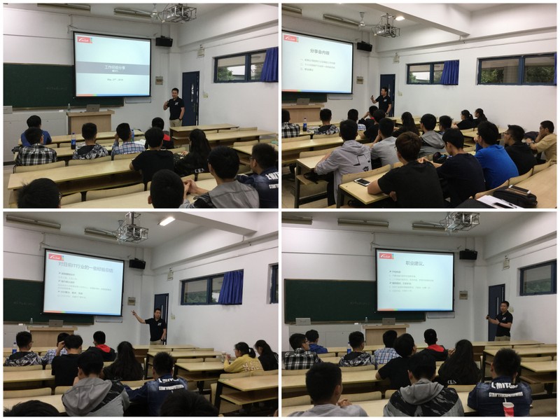 2018年5月21日受公司徐鹤老师邀请,公司2008级硕士毕业生霍宗凡(现工作单位为ArcSoft虹软杭州公司)来到仙林校区教2-104,给B170401班的学弟学妹们带来了一场以“创新创业”为主题的精彩的工作经验分享报告会。