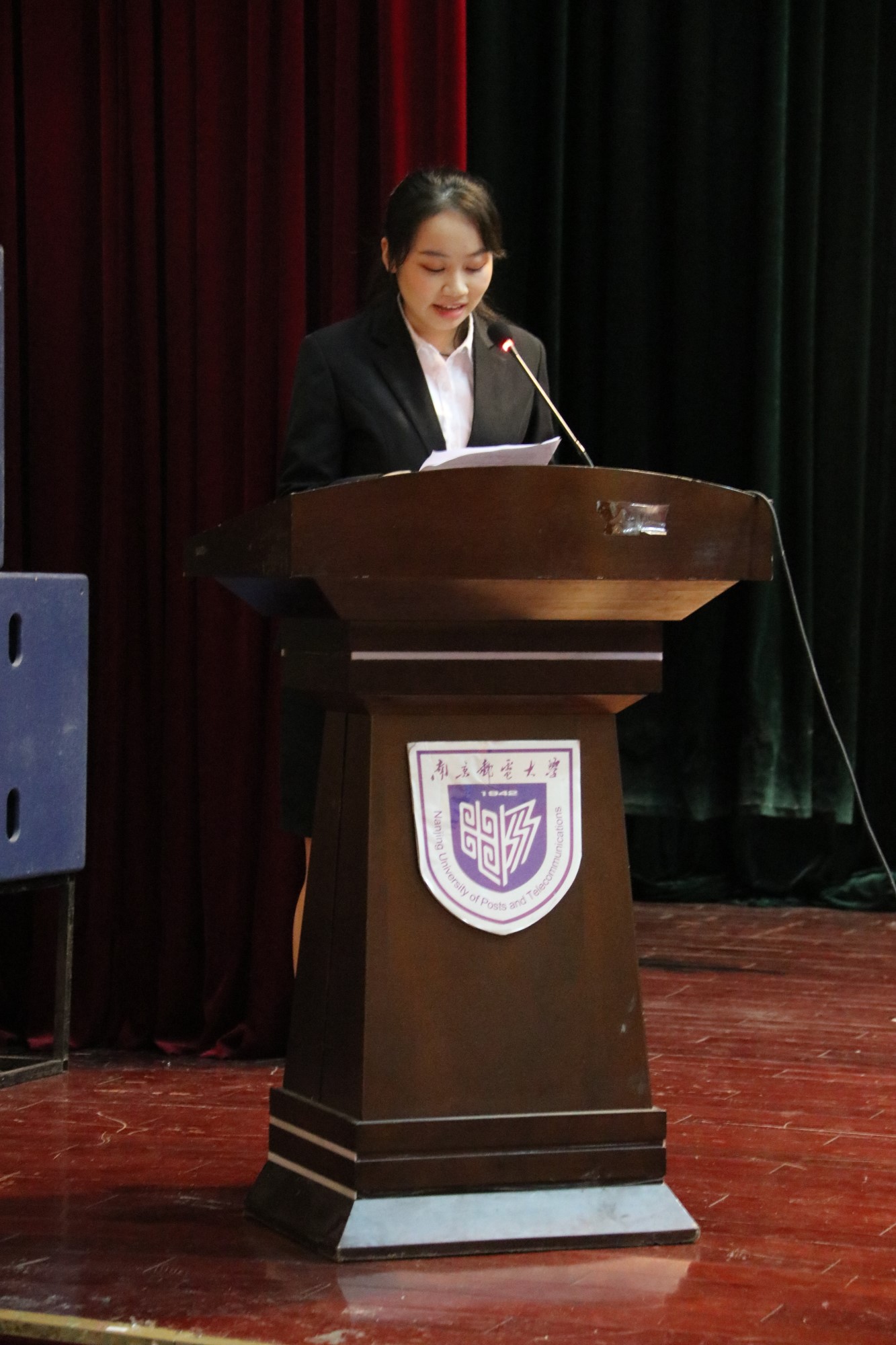 随后,院员工会、院科协、院青协和院心协分别介绍了自己的职能。首先院员工会主席王苑卉从迎新工作切入,引起同学们的共鸣,让同学们深切体会到院员工会与同学们的学习生活息息相关。她也介绍了员工会各个部门的职能,为同学们提供了员工会的基本信息,加深了新生们对院会的了解。