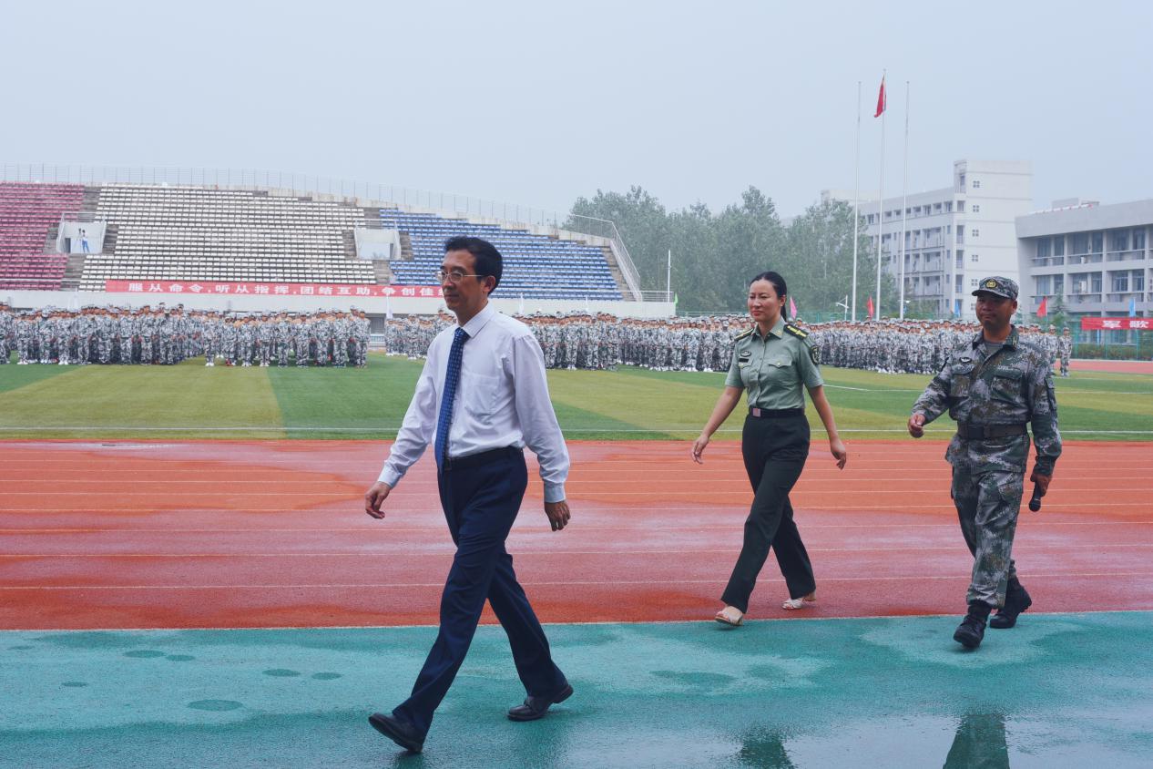 升旗仪式结束后,董事长杨震走进连队,检阅各院方队的军容军貌。公司参训新生抬头挺胸、目不斜视、笔挺着身板,等待接受检阅。杨董事长在检阅完成后,也肯定了参训学子的军训成果和付出的努力,并且对参训新生的优异表现和精神表示满意和赞扬。