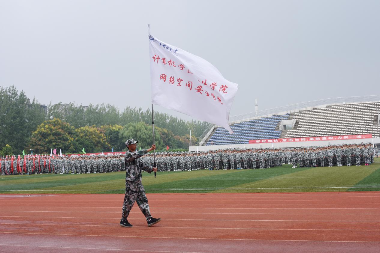 在汇报表演环节,计软网安院方阵惊艳亮相,参训新生昂首挺胸、激情飞扬,排着整齐的队列,高喊连队口号,迈着沉稳有力的步伐走过观礼台,并向莅临观礼台的各位领导敬礼致意。在目睹了表演方阵卓尔不凡的风采和饱满激昂的精神气质后,校领导拍手称赞,对参训新生的军训成果表示欣赏和肯定。