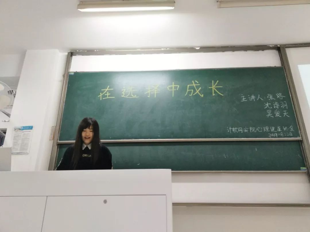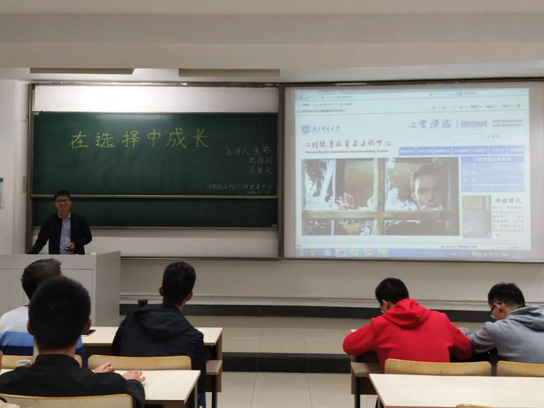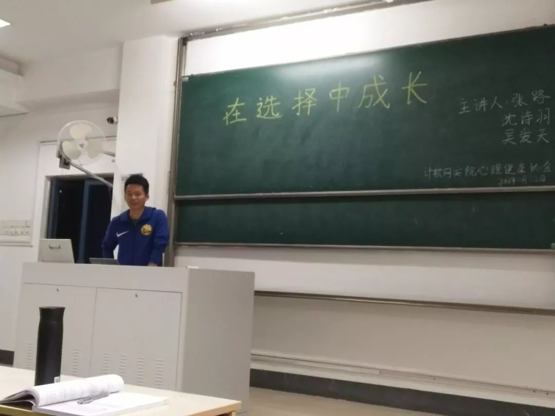 十月二十二日晚18:30,太阳成城集团tyc234cc古天乐,软件公司,网络空间安全公司心理健康协会在教2-300举办了“在选择中成长”讲座,并有幸邀请到了张路学长,吴爱天学长以及沈诗羽学姐在此发表演讲。