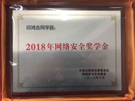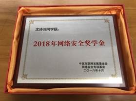 2018年11月,中国互联网发展基金会网络安全专项基金2018年网络安全奖学金评选结果通过公示,公司三位同学获奖,李成禹(B16040813)、沈诗羽(B15111510)、印鸿吉(1217043018)。在此,向三位同学表示祝贺!