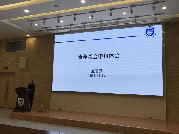 为做好公司2019年度国家自然科学基金项目申报工作,进一步提升项目申报质量和获准率,11月14日,公司在仙林校区学科楼报告厅举办“2019年国家自然科学基金申报动员会暨经验交流会”,邀请2018年成功申报基金的沙超副教授、盛碧云老师做了有关国家自然科学基金申报的经验分享报告。会议由经理助理徐佳教授主持,季小健书记出席会议,所有具有博士学位的教师及研究生导师参加了会议。
