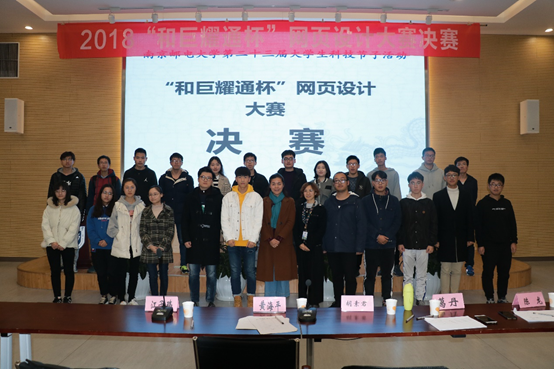 2018年11月22日14时,“和巨耀通杯”网页设计大赛决赛在仙林校区计算机学科楼一楼报告厅圆满落下帷幕。计软网安院黄海平副经理,计软网安院经理助理胡素君老师,团委书记葛丹老师,院科协指导老师陈龙老师以及青柚工作室江子玮学长出席担任此次比赛的评委并为获奖选手颁奖。