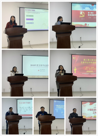 大会采取现场述职与书面述职相结合的方式,现场述职的是全体7位教工党支部书记和5位担任员工党支部书记的辅导员,其余7位员工党支部书记采取书面述职。