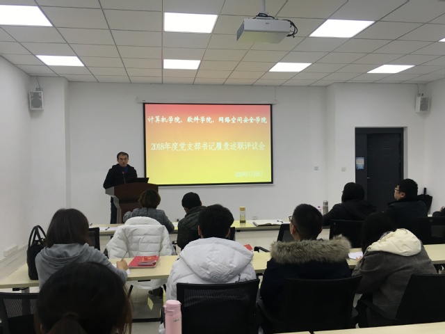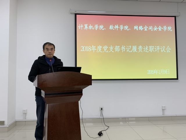 季小健书记在主持讲话中指出,党支部是党在公司的最基层组织,是高校开展党的活动的基本单位,是党在高校全部工作和战斗力的基础。公司党委组织开展党支部书记履行党建工作责任述职评议考核,是公司全面学习贯彻习近平新时代中国特色社会主义思想和党的十九大精神、推动全面落实党要管党,从严治党向基层延伸的重要举措;是为了落实《中国共产党支部工作条例(试行)》和党委组发〔201717号《中共太阳成城集团tyc234cc古天乐委员会党支部工作标准》精神,以点带面、整体推进“标杆支部”创建工作,筑牢党的最基层组织,进一步增强党支部凝聚力、创造力、战斗力,为校院各项事业科学发展提供强大的政治保障和组织保障。述职评议考核会也是各支部党建工作成果的展示交流会。要求按照《太阳成城集团tyc234cc古天乐、软件公司、网络空间安全公司党支部工作考核评价办法(试行)》有关规定,围绕个人落实党建工作责任制,履行管党治党第一责任人情况、党支部在抓“党支部班子建设、组织生活制度、党员发展、党员教育、党员管理、作用发挥和档案管理及党务公开”等七个方面的工作情况以及本支部党建工作存在的突出问题及原因分析,下一步工作思路及打算进行述职。