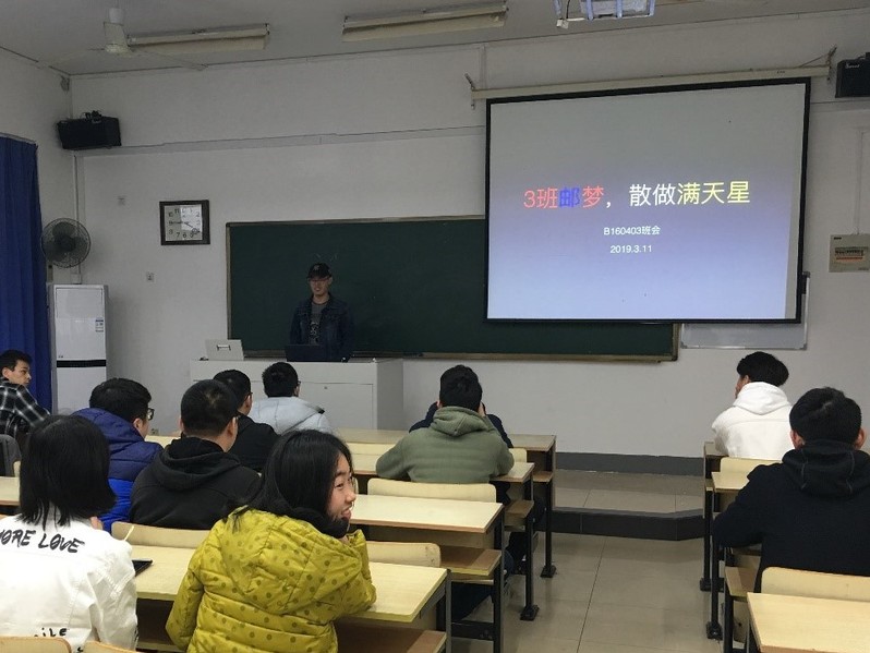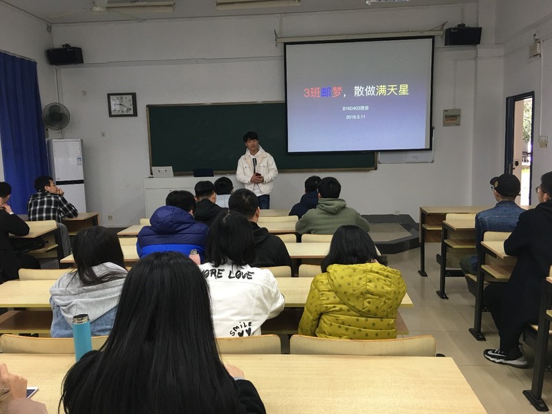 为了使同学对即将面临的选择有更进一步的了解,并且打消自己的徘徊和犹豫,坚定自己的决心,做出符合自己情况的选择,用每一个今天的努力为下一个明天的成功蓄势,2019年3月11日,B160403班在教2-103开展“三班邮梦 散做满天星”主题班会。