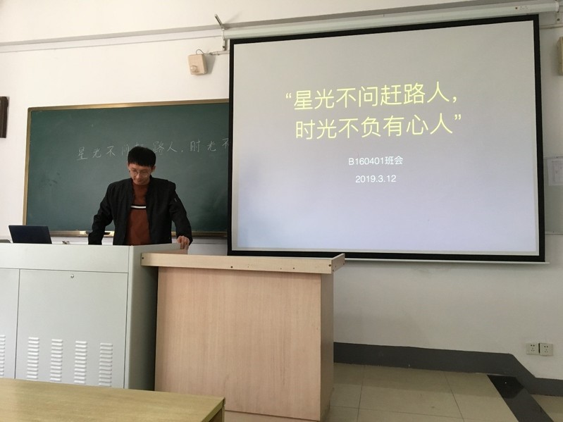 为给大四的冲刺做好最后的准备,为明确和坚定每位同学的目标,让所有对于未来的展望能够落地生根,2019年3月13日,B160401班级在教3-106举行了主题为“星光不问赶路人,时光不负有心人”的毕业指导班会。