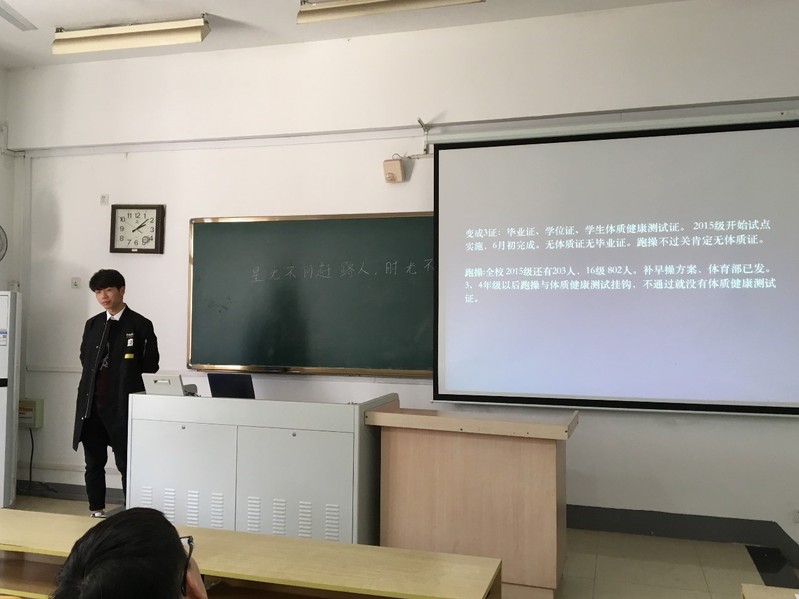 接着,辅导员陈龙老师为同学们分析毕业目标,给大家相应的指导,主要分为考研和就业两块内容,用数据和事例来让同学们了解考研和就业的挑战以及各位同学所要努力的方向。在班会进行的过程中,每位同学都认真聆听,有些同学还时不时点头并且记录内容,陈龙老师还为大家带来了许多就业指导的干货,分享了公司就业实习招聘的信息网站等。另外,陈龙老师在提问环节积极为同学们解答疑惑并且单独给就业和考研有困难的同学以分析和辅导,给予全体同学全方位的支持和心理帮助。