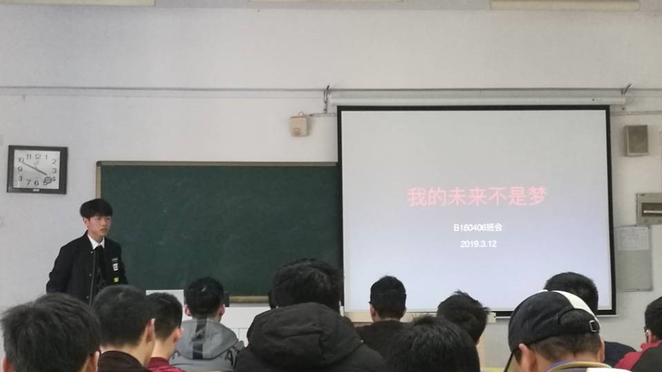 为更好的帮助同学们明晰大学毕业以后的发展规划,2019年3月12日下午,B160406班全体同学在辅导员老师的带领下,组织开展了“我的未来不是梦”的主题班会,希望通过这次班会为同学们答疑解惑,引导员工结合自身情况确定升学或就业目标后,以实际行动克服困难,砥砺前行,坚持到最后,实现自己的大学梦。