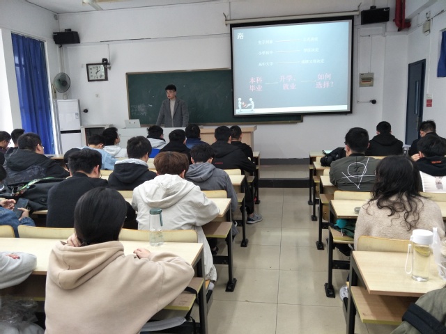 本次班会主题为“找寻未来的路”,主要从升学和就业两方面展开说明。首先老师点明了大三下的重要性,希望我们能够找准自己的位置,不给未来留下遗憾。其次从升学开始,给出了各种可能的升学途径包括保研、留学、考研等,列出各种途径的定位方式,具体时间规划,还用身边的真实案例比较了考研辅导班的优劣,同学们受益匪浅。接着从就业方面来说,就业的途径也是多种多样,杨健老师推荐了公司官方的就业网站,并鼓励同学们积极参与面试,积累经验,从中找到不足,不断改进。最后,杨健老师提醒我们一些毕业硬性条件,自主个性化学分、体测、跑操等一定不能偷懒,一定要满足要求。