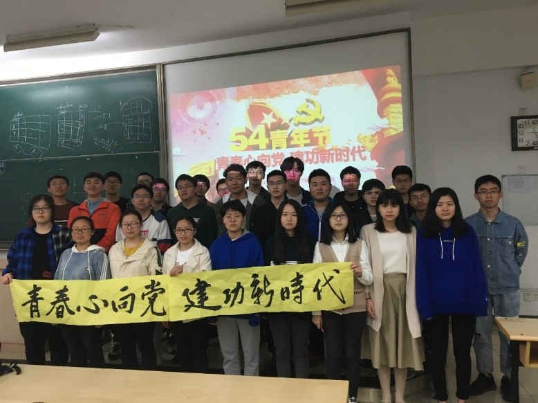 为了深入学习贯彻习近平新时代中国特色社会主义思想、党的十九大精神和团十八大会议精神,庆祝中华人民共和国成立70周年、纪念五四运动100周年,2019年4月4日上午B160401、B160402团支部于教3-102开展以“青春心向党·建功新时代”为主题的团日活动,本次活动由团支书主持。