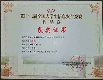 公司学子在第十二届全国老员工信息安全竞赛作品赛总决赛上获得三等奖