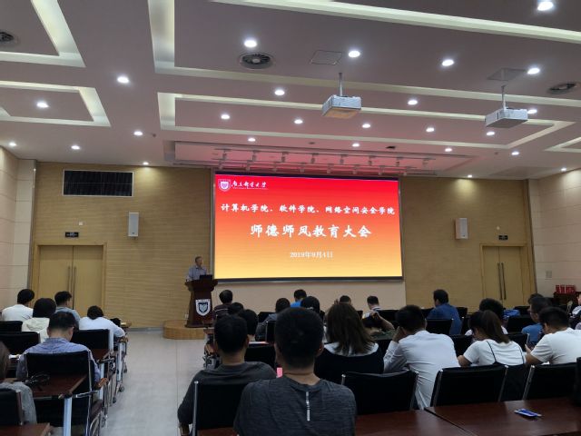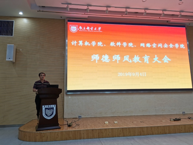 季小健书记首先传达了教育部发布的“《教育部关于高校教师师德失范行为处理的指导意见》教师〔2018〕17号”和江苏省教育厅发布的“《省教育厅关于印发教师师德失范行为处理实施细则的通知》苏教规〔2019〕1号”两个文件精神;重点解读了《江苏省高校教师师德失范行为处理办法(试行)》中有关师德师风失范行为的具体表现和师德失范行为的处理及处理结果的运用等。最后,他要求,各系中心、部门和教师党支部要将学习《江苏省高校教师师德失范行为处理办法(试行)》摆上重要日程,纳入本学期教职工政治理论学习计划,认真组织教职工学习领会和全面掌握该《办法(试行)》的主要内容,进一步规范公司教职工履职履责行为,恪守《新时代教师职业行为十项准则》,落实立德树人根本任务,弘扬新时代高校教师道德风尚,杜绝师德失范行为的发生;要求每位教职工务必强化师德意识,自觉按照习近平总书记对广大教师提出的“四个引路人”、“四个相统一”的期望和要求,做有理想信念、有道德情操、有扎实学识、有仁爱之心的“四有”好教师。