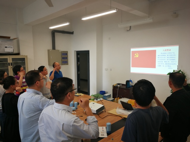 支部书记陈伟带领党员再次开展了一次入党宣誓活动,大家宣读了中国共产党的入党誓词,再次重温不忘初心的经典语录,并且牢记教书育人的使命。