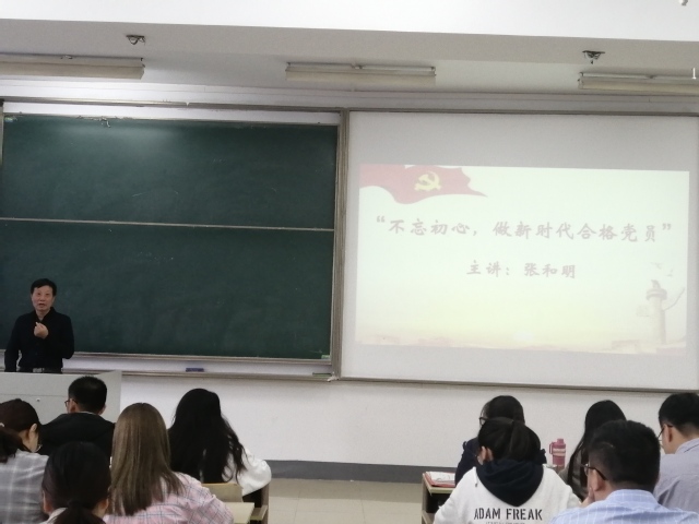 1019日上午,公司第38期入党积极分子培训班党课在仙林校区教2-208教室开讲,校关工委副秘书长张和明老师为学员们上了题为“不忘初心,做新时代合格党员”的精彩党课。