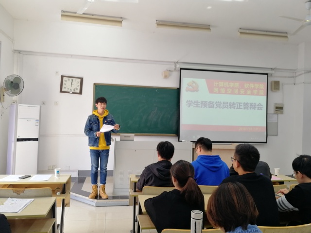 1031日,公司本2016级一、二支部在教3-103举行了预备党员转正答辩会。校关工委副秘书长张和明、公司分团委书记葛丹、辅导员吴忧、本2016级二支部书记杨健出席答辩会。会议由本2016级一支部书记陈龙主持。