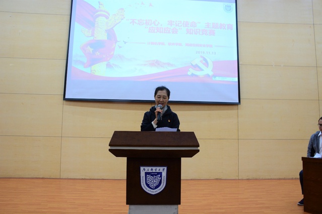 校关工委副秘书长、院关工委副主任张和明老师对本次活动作了点评。他说,此次“不忘初心、牢记使命”主题教育应知应会知识竞赛形式新颖,内容丰富,是创新学习方式的一次成功尝试。“不忘初心、牢记使命”主题教育就是要使每一位党员同志通过不断学习,更加坚定理想信念,做新时代合格的共产党员。今天在竞赛过程中,穿插了对红色校史的学习,更是为本次活动增添了色彩,激发了党员同志们深厚的爱党、爱国、爱校情怀,我为本次活动点赞。希望广大党员,特别是年轻教师和员工能继承红色传统,培养吃苦耐劳,勤奋好学的传统美德,保持与时俱进,锐意进取的精神,始终用党员标准严格要求自己,努力做一名新时代合格的共产党员。
