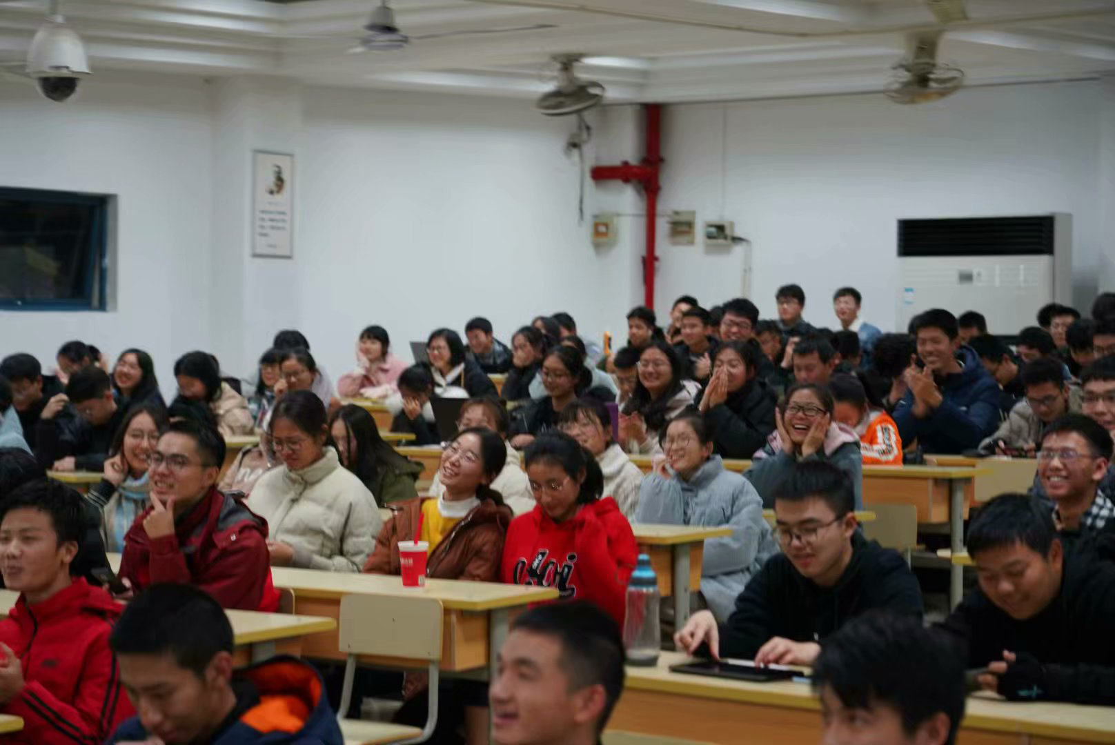 大会的第一部分是对于期中考试的分析。首先,辅导员老师展示了各班的期中考试平均成绩,并希望考的好的班级继续保持,也希望成绩不太理想的班级不要气馁,继续努力。然后,请了6位在本次期中考试中成绩优异的同学分享学习经验,同学们充满了期待。演讲人以精炼生动的语言讲述了彼此学习经验,同学们收获颇丰,也摩拳擦掌希望在接下里的考试中大显身手。