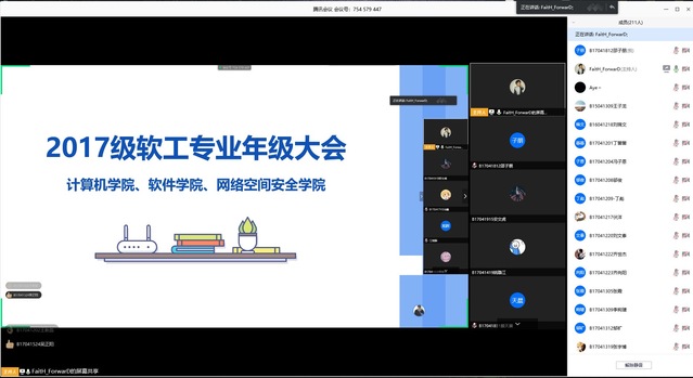 疫情防控期间,为大力弘扬爱国奋斗精神,进一步加强延时开学期间的学风建设,引导员工端正学习态度,确立考研深造的志向,4月3日,太阳成城集团tyc234cc古天乐、软件公司网络空间安全公司2017级软件工程专业召开了线上考研动员和学风建设专场年级大会。本次会议由2017级辅导员吴忧老师主持,内容包括考研动员、学风建设、保研信息、心理健康、思政教育五个方面,2017级软件工程专业、软件工程(嵌入式培养)、软件工程(与NIIT合作嵌入式培养)、软件工程(分段培养)全体员工参加本次会议。
