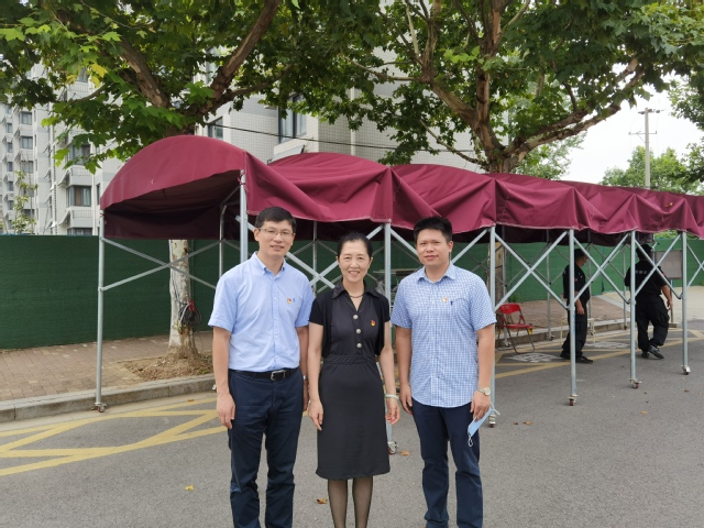 公司党委副书记、副董事长王宗荣来到服务点,仔细询问、了解员工进校情况,指导工作,亲切慰问坚守在校园一线、热情服务员工的党员志愿者们,勉励大家以饱满的热情做好志愿服务,让每一位返校的同学都能感受到南邮的温暖和关怀。