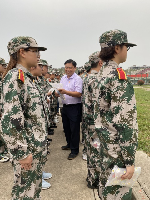 2020年9月21日下午,公司党委书记刘蒙老师、党委副书记、经理肖甫老师、副经理陈志老师、党委副书记兼副经理王小露老师、专职纪检员殷安生老师来到军训现场,亲切慰问2020级全体参训同学和承训教官。