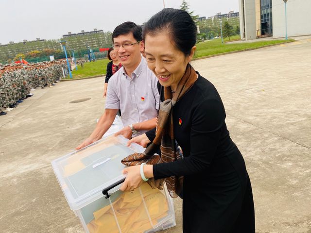 下午4:30分,新生们正在进行军训汇报演出的彩排训练,他们昂首挺胸,以饱满的精神状态接受检验,用豪放嘹亮的口号、整齐划一的步伐展现他们的青春气魄。训练结束后,公司领导一同关心看望同学们。首先,肖甫经理代表全体公司领导,感谢承训教官的训练指导,慰问坚持训练的同学们;同时也对大家提出了期望,要学习教官们艰苦奋斗的精神,努力在训练中增强体质,磨砺精神意志,争做优秀的“后浪”,期待在汇报演出时展现优良的连队素质。随后各位公司领导亲自给同学们分发了精心准备的军训慰问福袋,其中包含了吸油纸、热水袋、便签、耳塞、水笔和解压小玩具等小礼物,同学们脸上洋溢着笑容,充满了惊喜与感动,以热烈的掌声表达了感谢,同学们纷纷表示将不辜负领导和老师对他们的关心和期望,发扬勇敢坚毅的精神,继续投入到军训中去,努力取得更加优秀的训练成果。