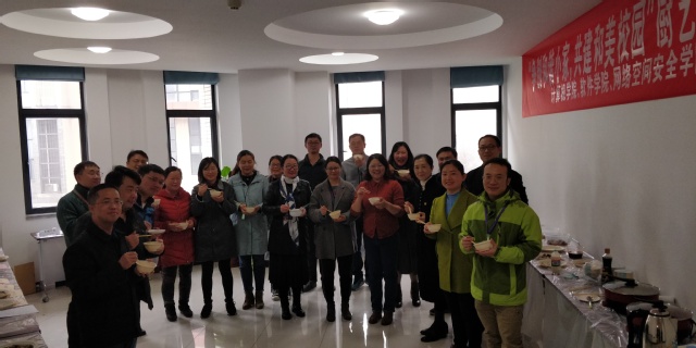 参与的老师们热情高涨,别出心裁进行了天马行空的艺术创作,现场人声鼎沸。计算机软件教学中心推出了系列家常菜----当归猪肝、银芽炝腰片、冰糖红烧肉、芝士焗南瓜、糖醋带鱼、爆炒猪肝、虾仁山药、软兜长鱼等;软工系的老师们则推出了“金色时光”、“青葱岁月”、“区块面”、“服务外包”等等让人耳目一新的菜品。饭后甜点同样丰富多彩,各种造型考究、摆盘精致的点心满满当当摆了一整桌。