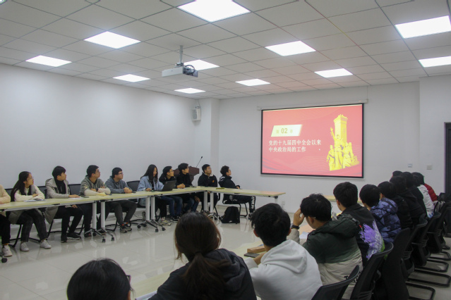 会上,康雯雯主要从“十九届五中全会会议概述”、“党的十九届四中全会以来中央政治局的工作”、“聚焦‘十三五’时期取得成就”、“我国发展环境面临的机遇和挑战”以及“‘十四五’规划和二〇三五年远景目标”等五个部分,带领同学们认真学习习近平总书记在全会上的重要讲话精神和全会公报等重要文件,帮助同学深刻理解全会的精神实质和重大部署,理解新时代党作出的重大经济社会战略决策,全面增强实践能力和斗争本领,激发接续奋斗的历史使命和责任担当。