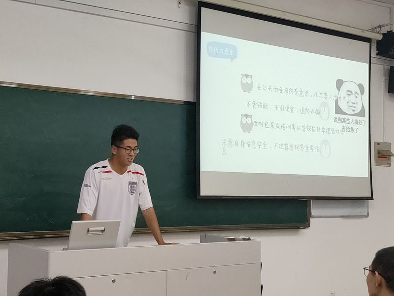 本次班会切中大一新生的群体特征,在整体的讲述过程中适当地添加一些年轻人感兴趣的表情包和故事,让死板的安全教育主题显得生动新颖;实在的内容让同学们收益颇丰。相信通过本次班会,同学们会将安全二字铭记于心!
