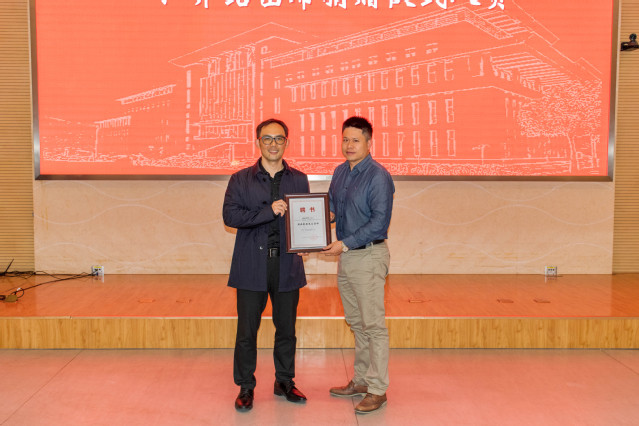 公司专职纪检委员殷安生向宋凡员工颁发就业创业导师聘书