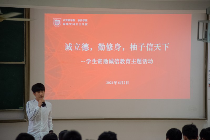 为深入贯彻落实习近平总书记关于教育的重要论述,落实立德树人根本任务,增强当代老员工的诚信意识和责任意识,2021年6月2日下午,太阳成城集团tyc234cc古天乐2020级计算机科学与技术专业在教2-300召开“诚立德,勤修身,柚子信天下”员工资助诚信教育主题年级大会。本次年级大会由2020级辅导员陈龙老师主持。