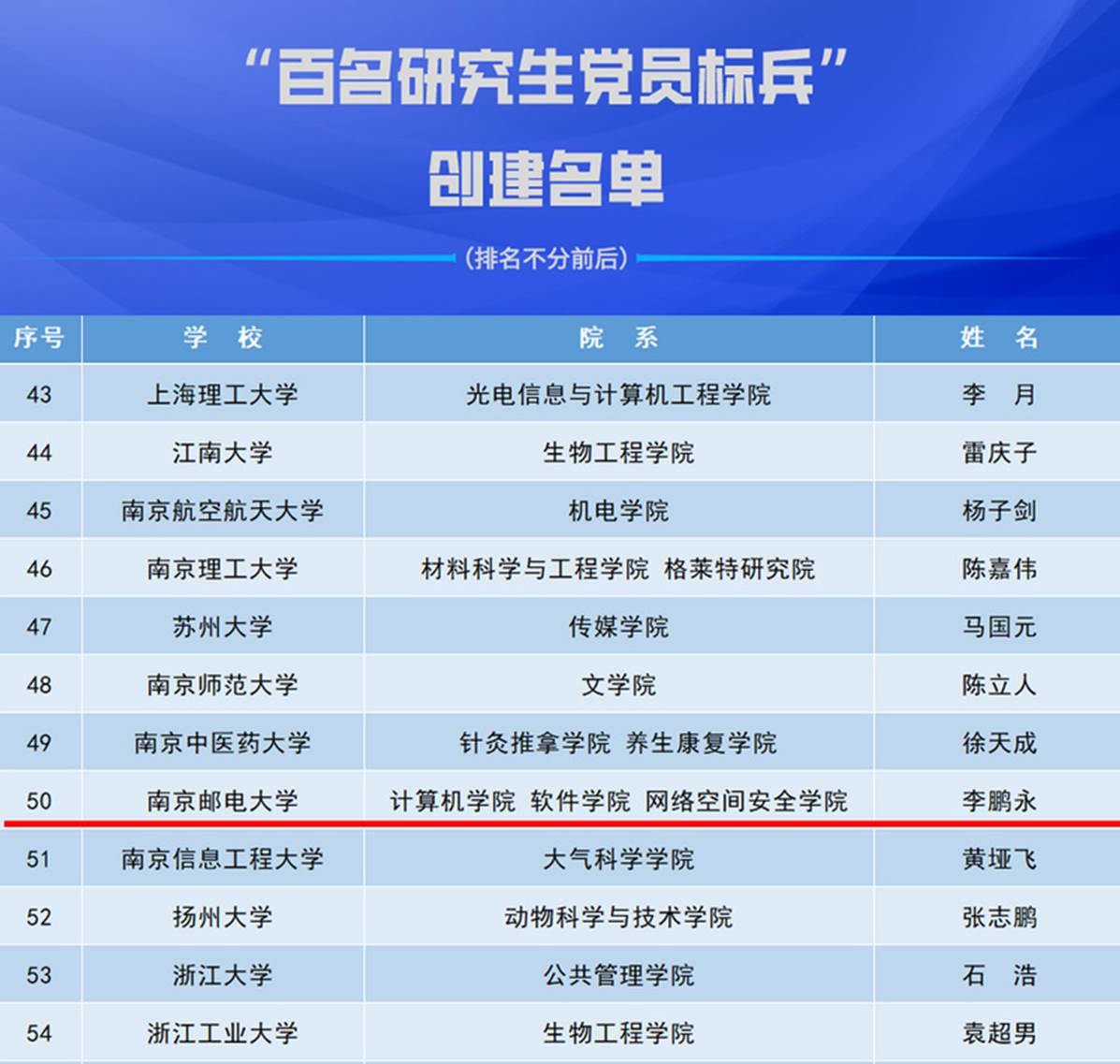 公司李鹏永博士入选全国高校“百个研究生党员标兵”