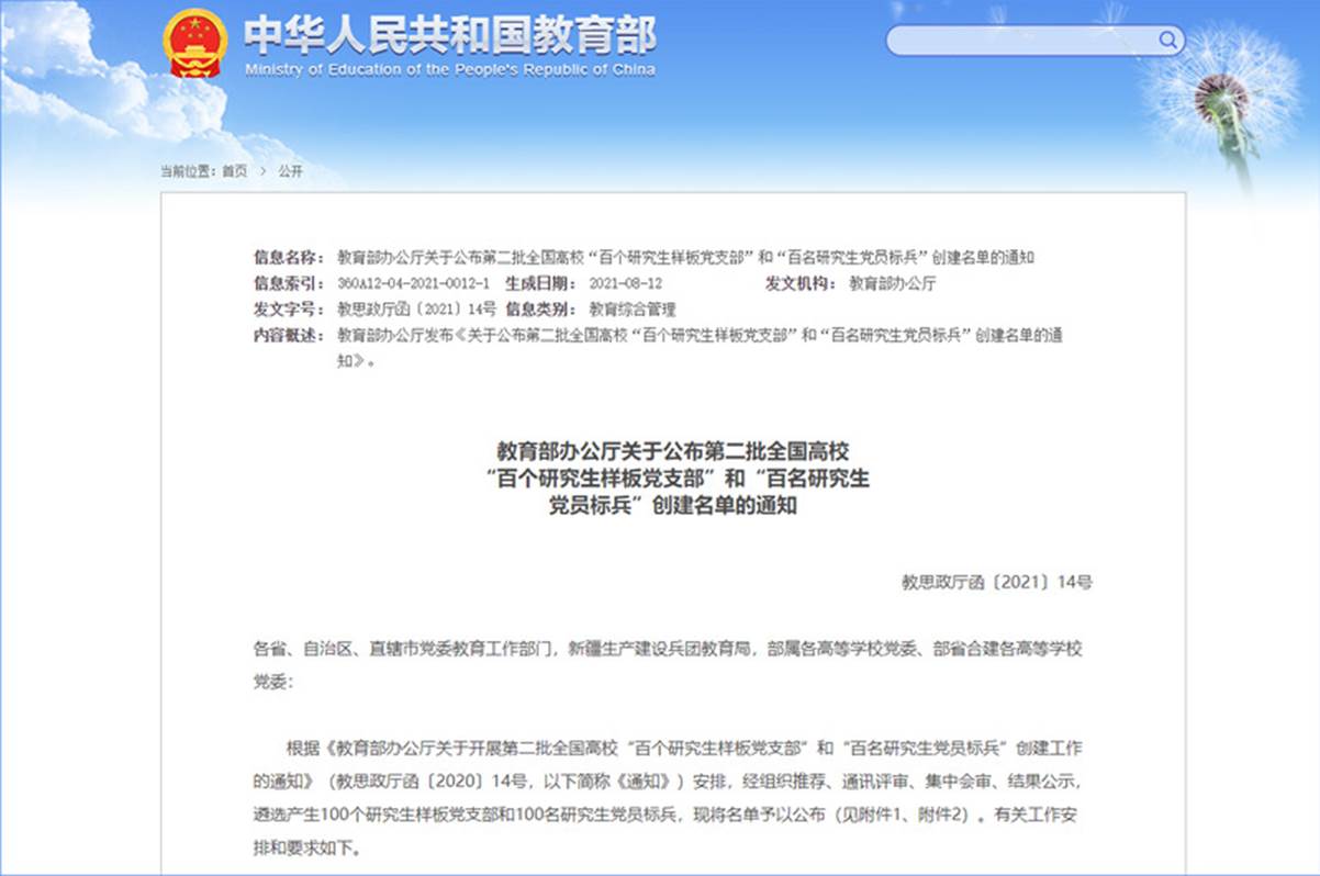 8月20日,教育部办公厅公布了第二批全国高校“百个研究生样板党支部”和“百名研究生党员标兵”创建名单。太阳成城集团tyc234cc古天乐2019级博士研究生李鹏永入选全国高校“百个研究生党员标兵”。